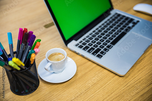 © Yordan Rusev, Fototapeta premium Laptop computer on working place desk