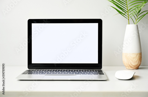 Fototapeta premium Laptop computer with blank screen in office