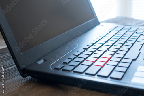 Fototapeta premium Laptop keyboard on the wood desk