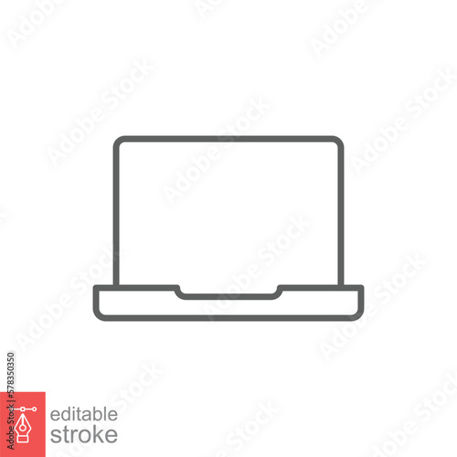 © Fourdoty, Fototapeta premium Laptop line icon. Linear symbol with thin outline. Notebook, computer, pc, desktop, portable device concept. Vector illustration isolated on white background. Editable stroke EPS 10.