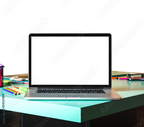 Fototapeta premium Laptop Notebook on table with transparent screen and transparent background