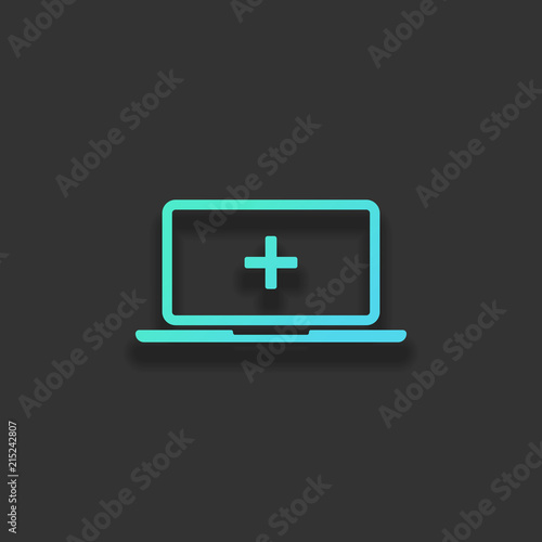 © fokas.pokas, Fototapeta premium Laptop or notebook computer with medical cross on screen. Simple
