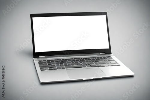 © MuhammadQaiser, Fototapeta premium Laptop or notebook with blank screen mockup, isolated with clipping path on grey background