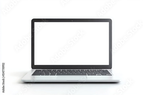 © Aklima, Fototapeta premium Laptop with a blank white screen displayed on a clean white background setup