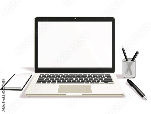 Fototapeta premium Laptop with Accessories on Clean Office Desk