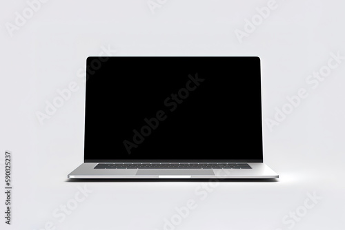 © degungpranasiwi, Fototapeta premium Laptop with black blank screen isolated on white background. Created with Generative AI Technology