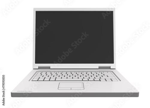 © Piotr Pawinski, Fototapeta premium Laptop with blank black screen isolated over white.