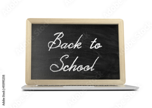 Fototapeta premium Laptop with chalkboard, back to school, education concept