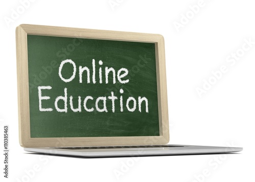 © Natalia Merzlyakova, Fototapeta premium Laptop with chalkboard, online education concept. 3d rendering.