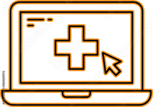 Fototapeta premium Laptop with cross icon and cursor vector illustration