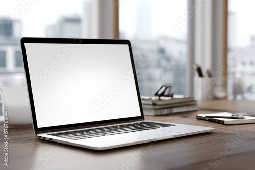 © Zann, Fototapeta premium Laptop with Empty Screen for Mockup Design in Office