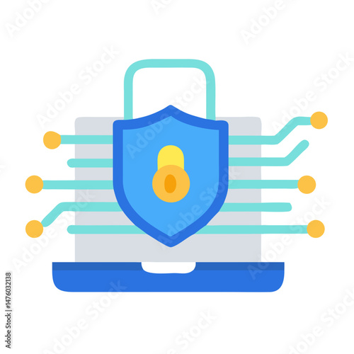 Obraz premium Laptop with shield padlock showing cybersecurity, data protection concept