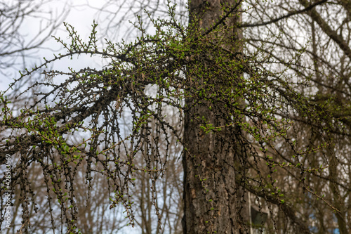 © Светлана Трубаева, Fototapeta premium Larch branches in a spring park.