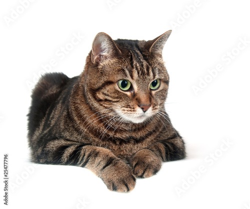 © Tony Campbell, Fototapeta premium Large adult tabby cat on white background