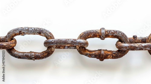 Fototapeta premium Large aged rusty chain with space for text on a white backdrop