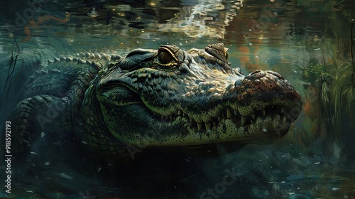 © Igor, Obraz premium Large alligator in water