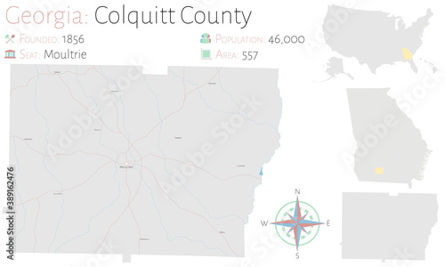Fototapeta premium Large and detailed map of Colquitt county in Georgia, USA.