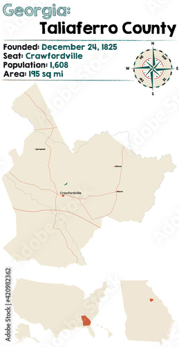 Fototapeta premium Large and detailed map of Taliaferro county in Georgia, USA.