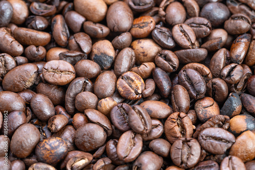 Fototapeta premium Large batch of java seeds transported through industrial roasting line,...