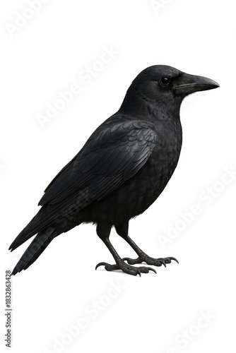 © Boris, Fototapeta premium Large black common raven standing on transparent background