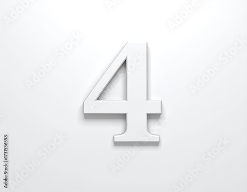 © wuhu, Obraz premium Large, bold white number four on a plain white background