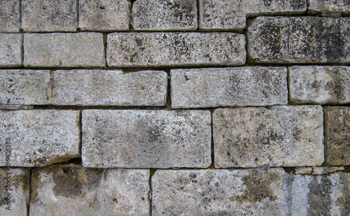 © juserdiuk, Fototapeta premium Large bricks wall. Ancient wall texture. Old grunge walls