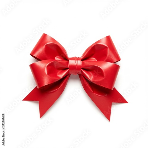 © Tatiana Nikulina, Fototapeta premium Large bright red ribbon bow on a white background for gift wrapping and festive decorations