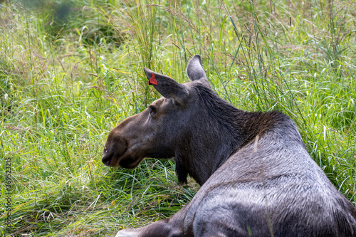 © константин константи, Fototapeta premium large brown moose resting in its paddock in summer