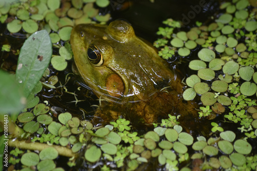 © dejavudesigns, Naklejka premium Large Bullfrog Half Immersed in the Bayou