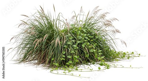 Fototapeta premium Large bushy grass with climbing plants on transparent background