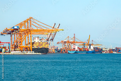 Fototapeta premium Large cargo container ship loaded with containers in the seaport