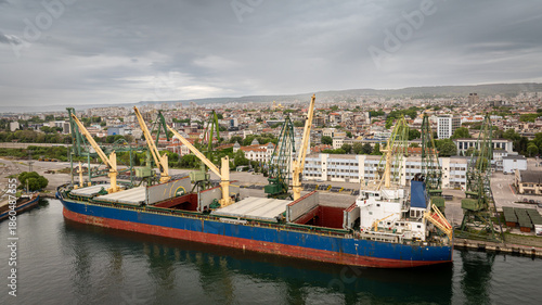 © dechevm, Obraz premium Large cargo ship in a dock at port