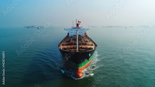 © Ashalina, Fototapeta premium Large cargo ship navigating open waters