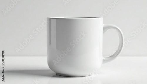 © Nimman, Fototapeta premium Large ceramic mug, thick handle, pristine white, empty, mug