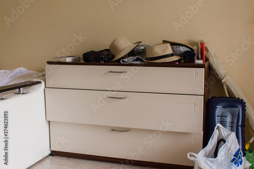© dyachenkopro, Fototapeta premium large chest of drawers in the room with things