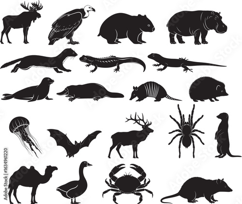 © Habib, Fototapeta premium Large Collection of Diverse Animal Silhouettes