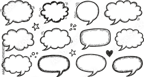 © CreatAr8, Fototapeta premium large collection of hand drawn comic speech and thought bubbles vector set