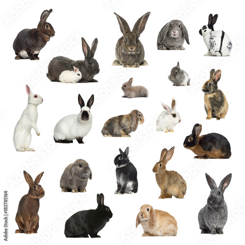 Fototapeta premium Large collection of rabbit, pet and exotic, in different position