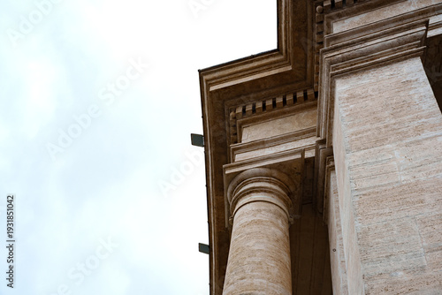 © fotofabrika, Obraz premium Large columns reach toward the sky on a historic building during an overcast day