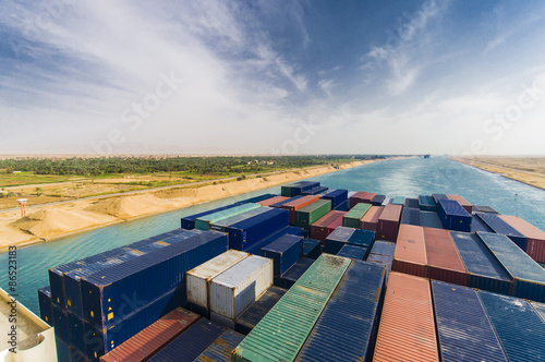 © donvictori0, Fototapeta premium Large Container Ship passing Suez Canal Egypt