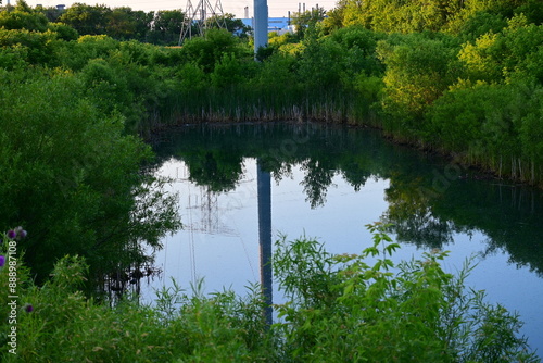 © Keith, Obraz premium Large Cove Of Water Under A Telephone Pole And Surrounded By Bushes