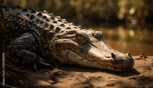 Obraz premium Large crocodile resting in tropical rainforest pond generated by AI