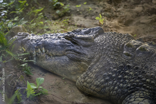 © MuhammadFadhli, Obraz premium large crocodile resting inside the cage