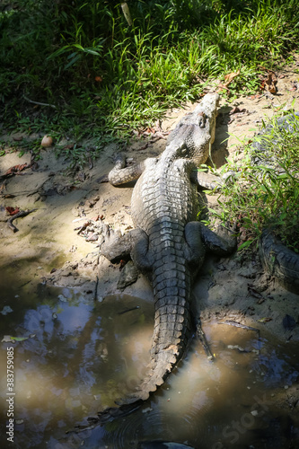 © MuhammadFadhli, Obraz premium large crocodile resting inside the cage