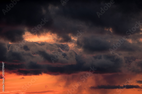 Obraz premium large dark clouds at sunset in spring