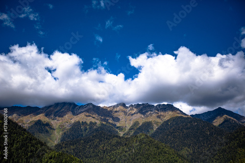 Obraz premium large dense mountain against a blue sky with clouds