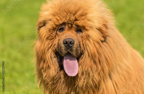 © SasaStock, Fototapeta premium Large dog chow-chow in the green park