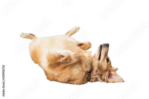 © adogslifephoto, Obraz premium Large Dog Rolled Over on Back