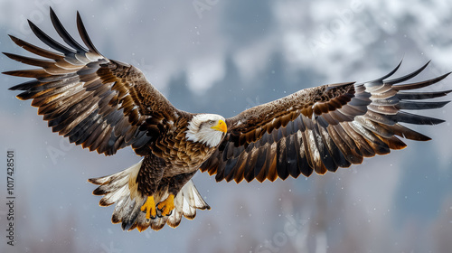© Алла Морозова, Obraz premium Large eagle is flying through the sky with its wings spread wide