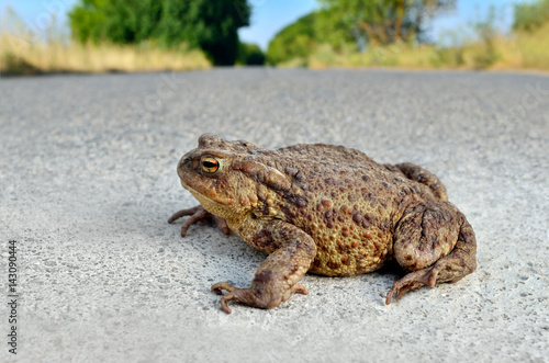 Obraz premium Large earth toad sits on a concrete road